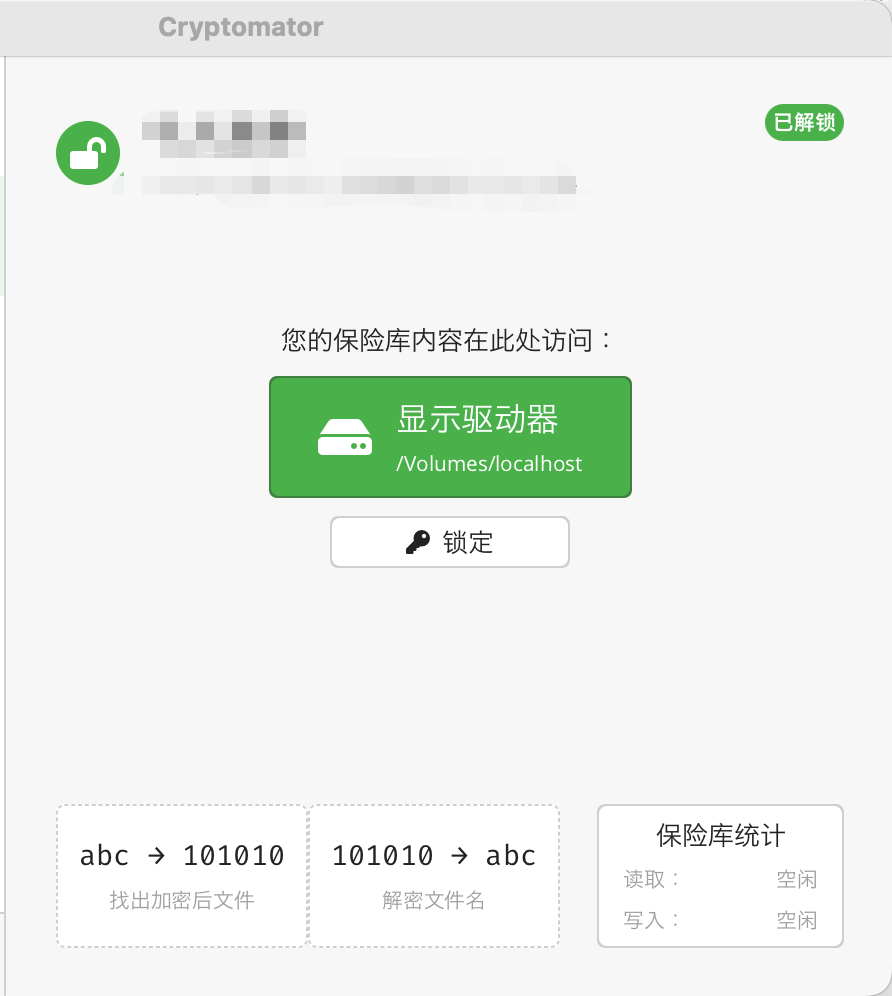 点击“显示驱动器”即可查看保险库内容。这个功能是通过 WebDAV 挂载的,相当于在系统中新创建了一个盘符。