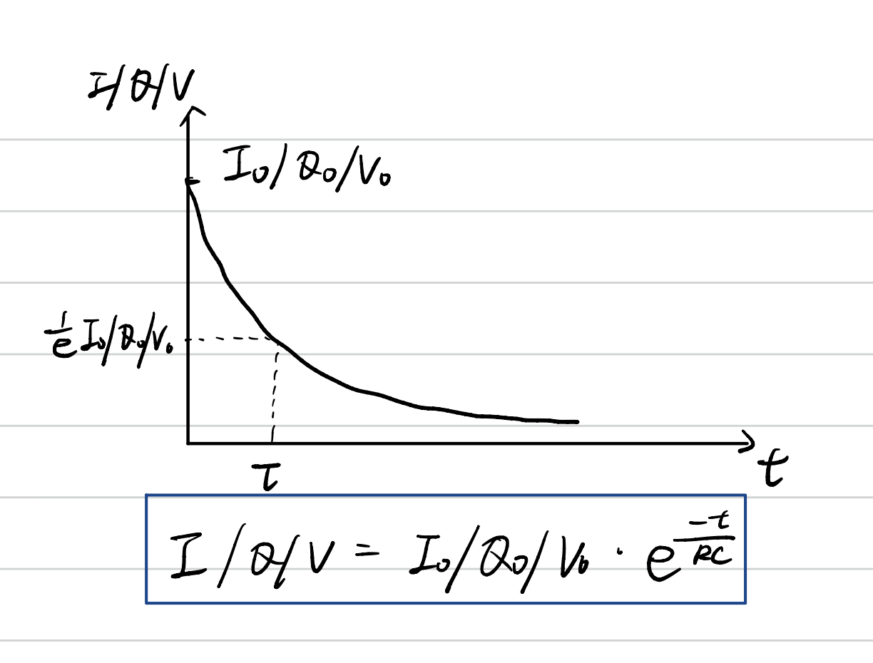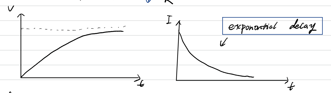 所以,$ V_C \uparrow 、V_R \downarrow ,I \downarrow = \frac{V_R \downarrow}{R}$ - 电压变化公式推导: