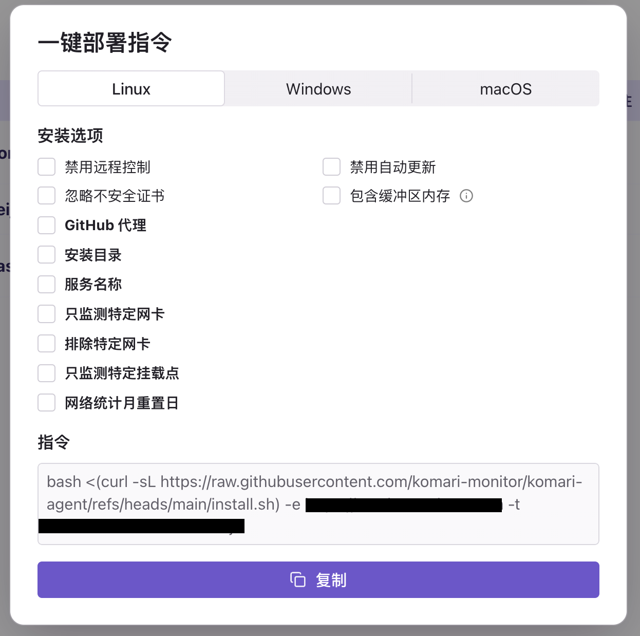 Agent有很多版本,一个是官方的komari-agent,还有其他第三方开发者开发的,各有利弊,我懒得折腾,就使用官方的agent