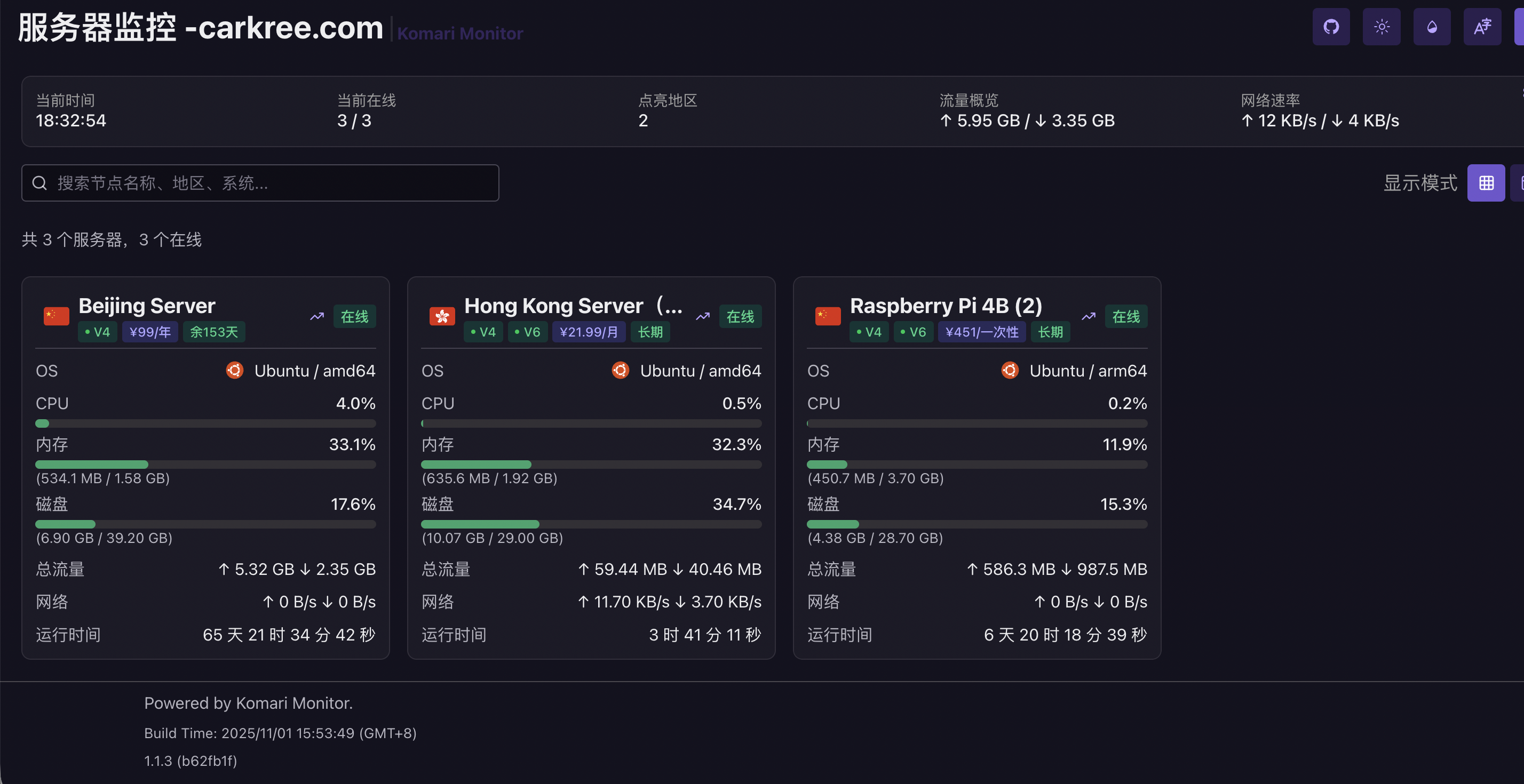 Komari 是一款轻量级的自托管服务器监控工具,旨在提供简单、高效的服务器性能监控解决方案。它支持通过Web 界面查看服务器状态,并通过轻量级 Agent 收集数据。Komari 的特点包括低资源占用,适合各种规模的服务器,用户可以完全掌控数据隐私,且部署过程简单。