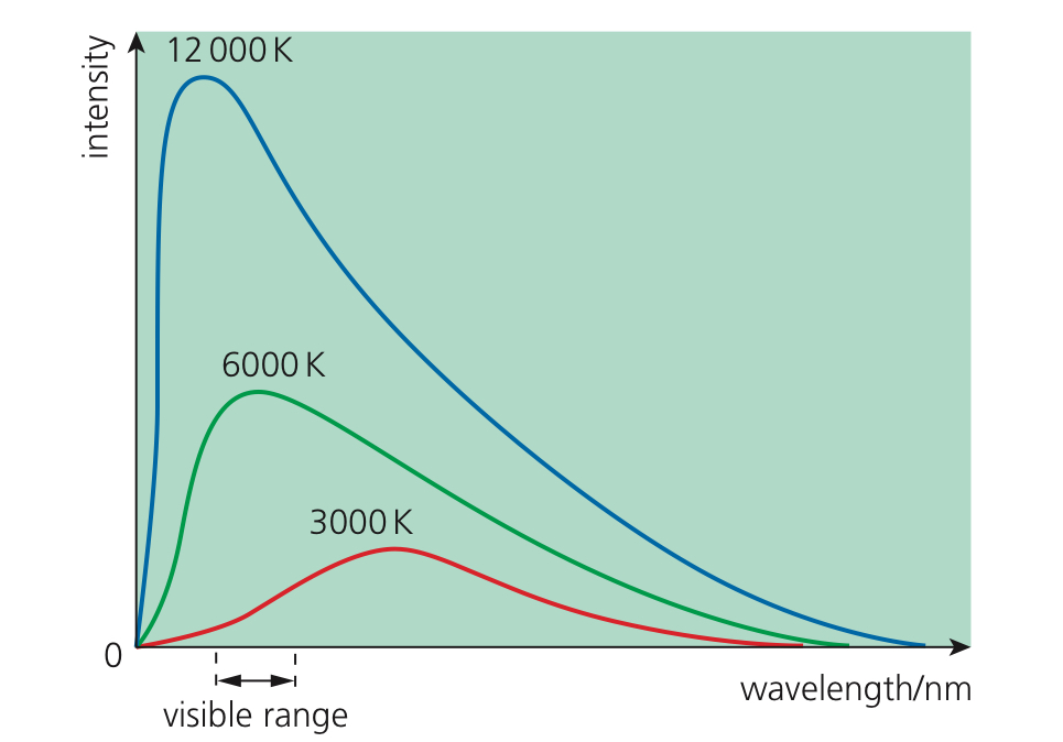 Peak wavelength is in the middle of the visible region of the electromagnetic spectrum(峰值波长处于电磁波谱的可见光区域的中间位置)