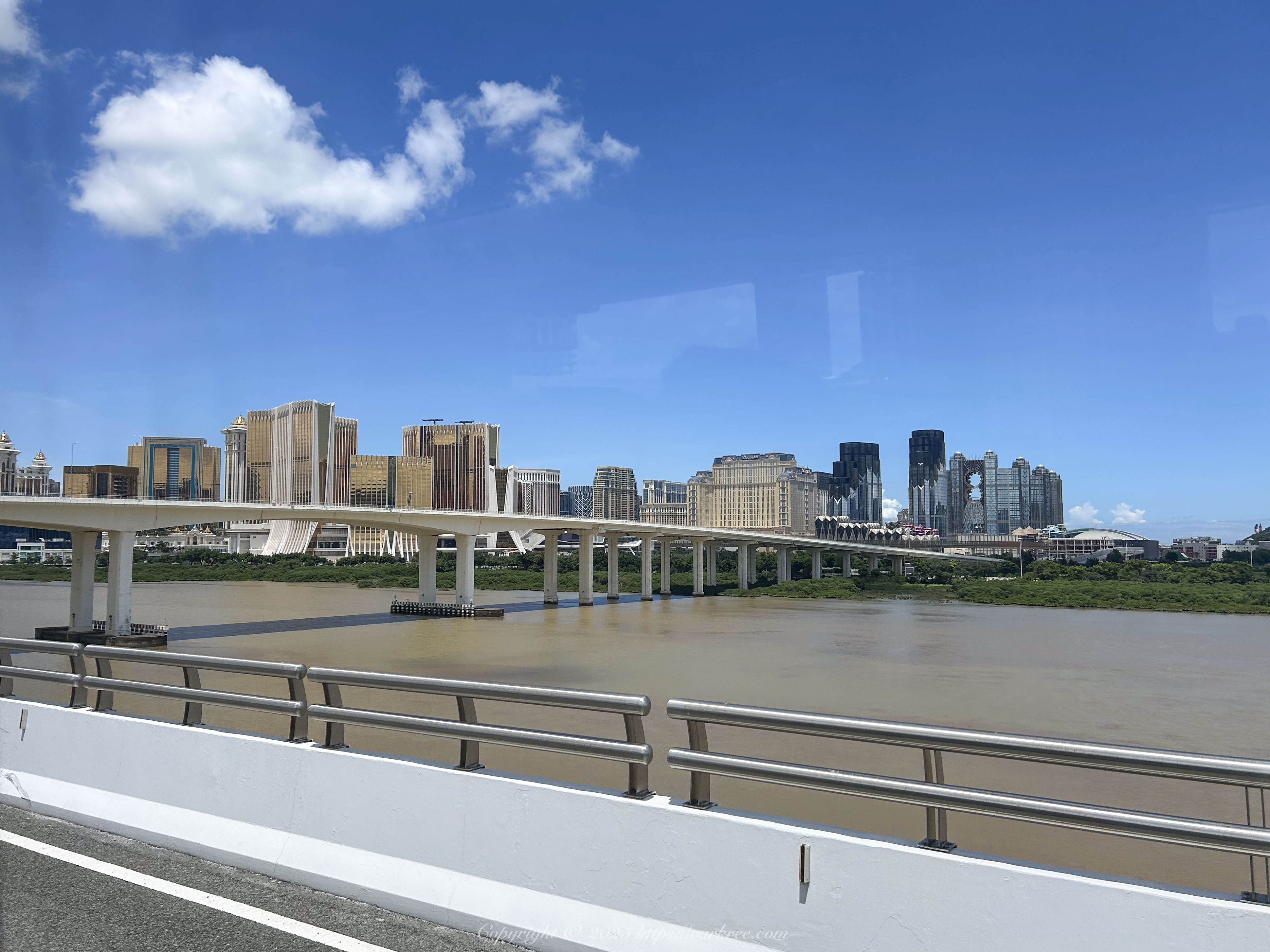 澳门的跨海大桥,远处是珠海横琴的高楼,之前去过横琴,那时候楼都不怎么亮,不知道现在怎么样了: