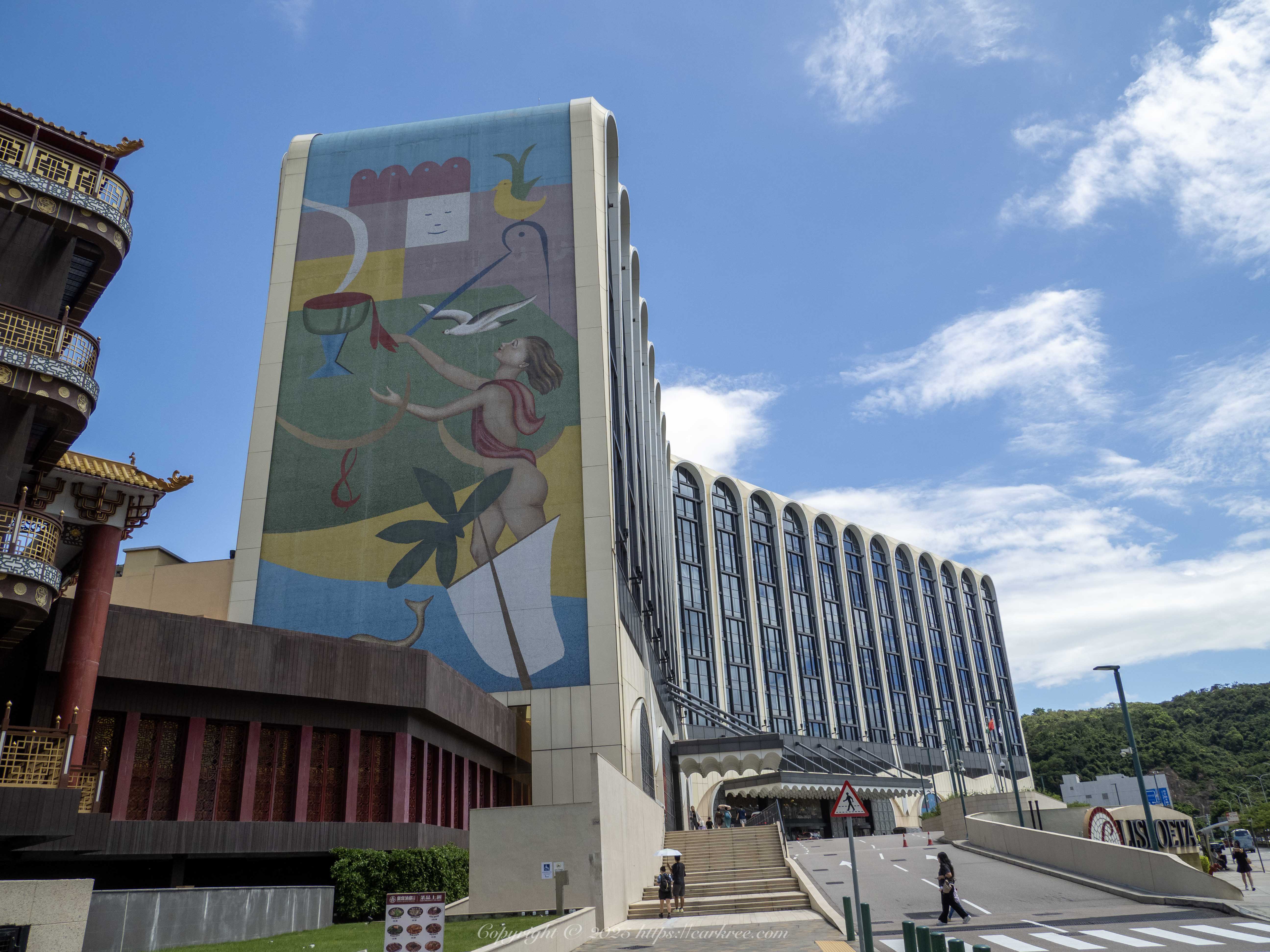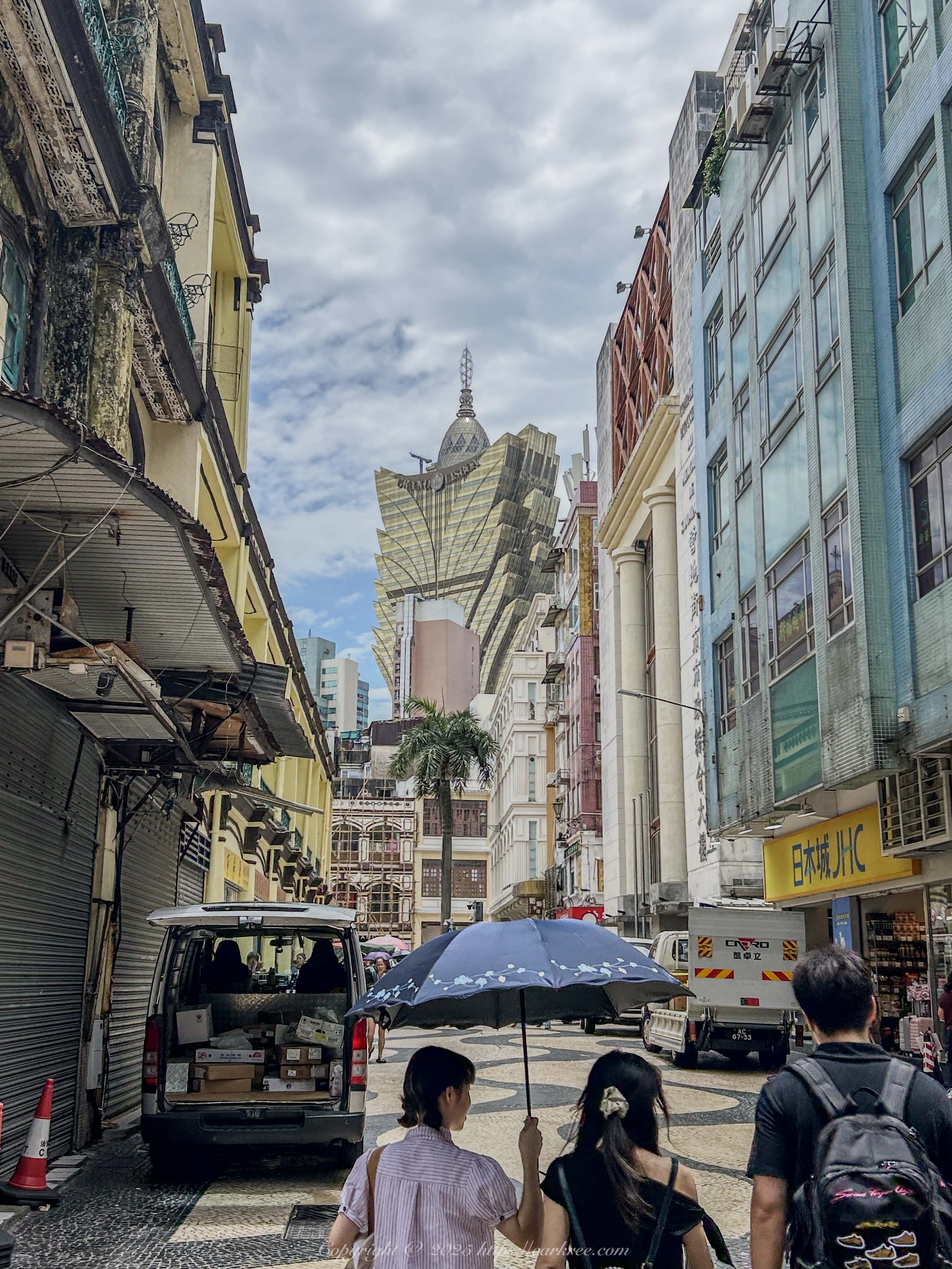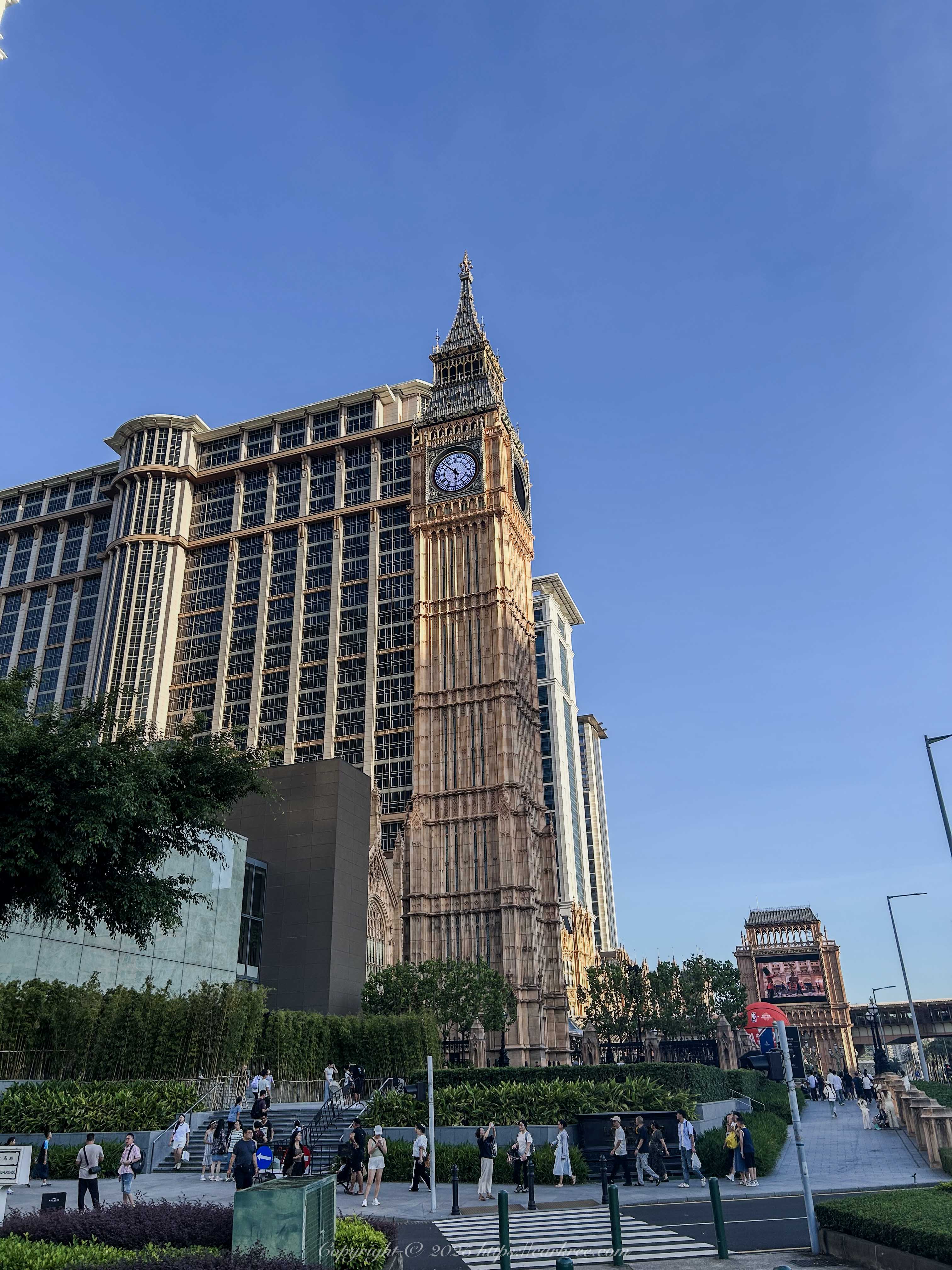 天空蓝的要命,不过彼时为8月,也热得要命。上图差不多就是澳门路凼城的全貌了,金碧辉煌的都是赌场