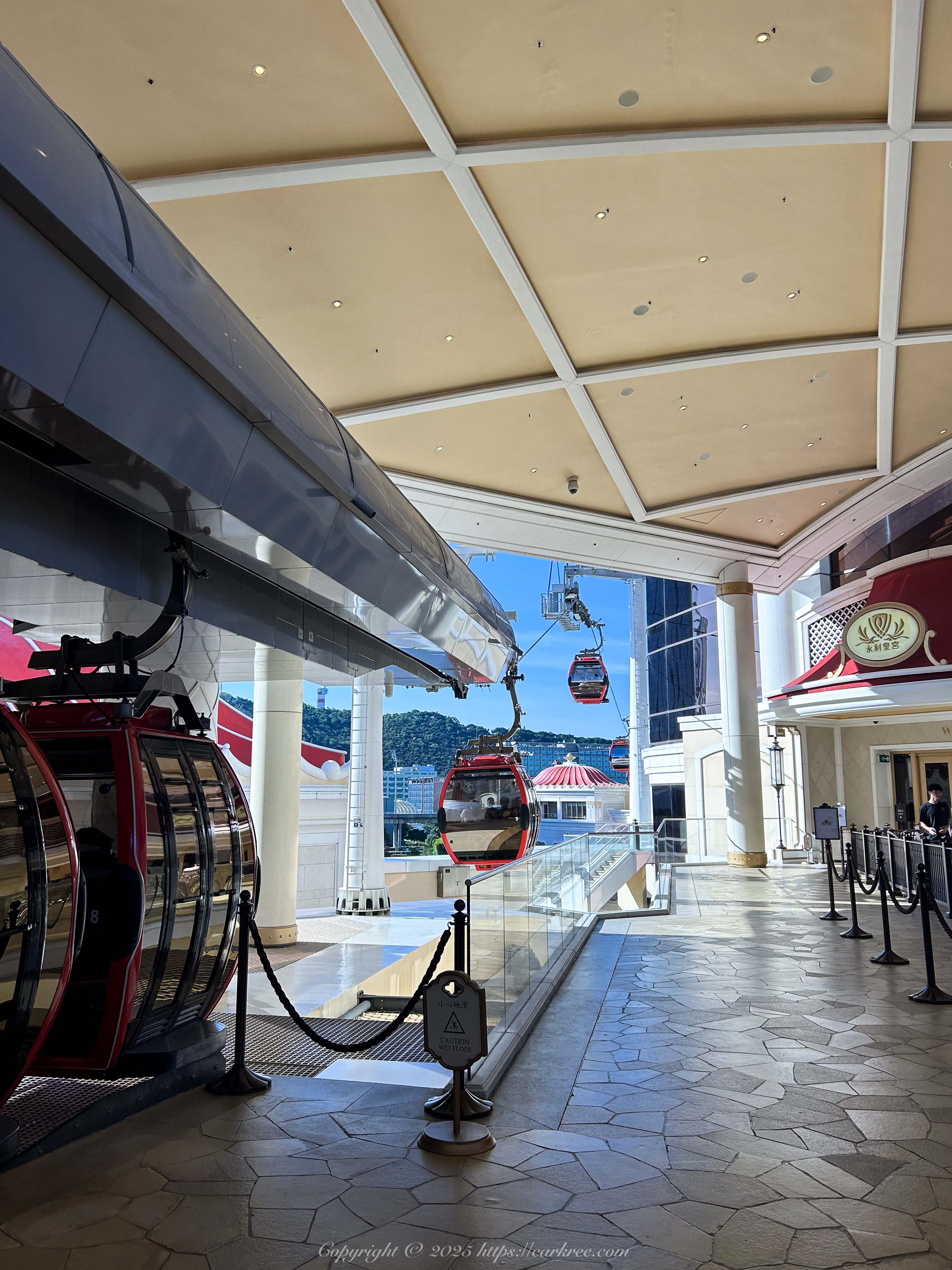 著名的永利皇宫缆车,排队的人很夸张,队伍几乎绕了酒店外围一圈,不过好消息是,葡京人酒店似乎与永利皇宫有合作,持葡京人提供的“优速通”可以免排队